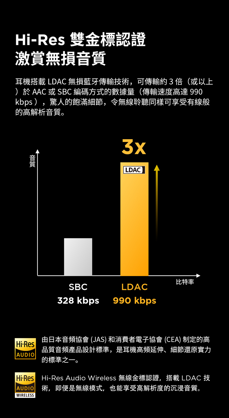 ★ Hi-Res雙金標認證; LDAC無損解碼