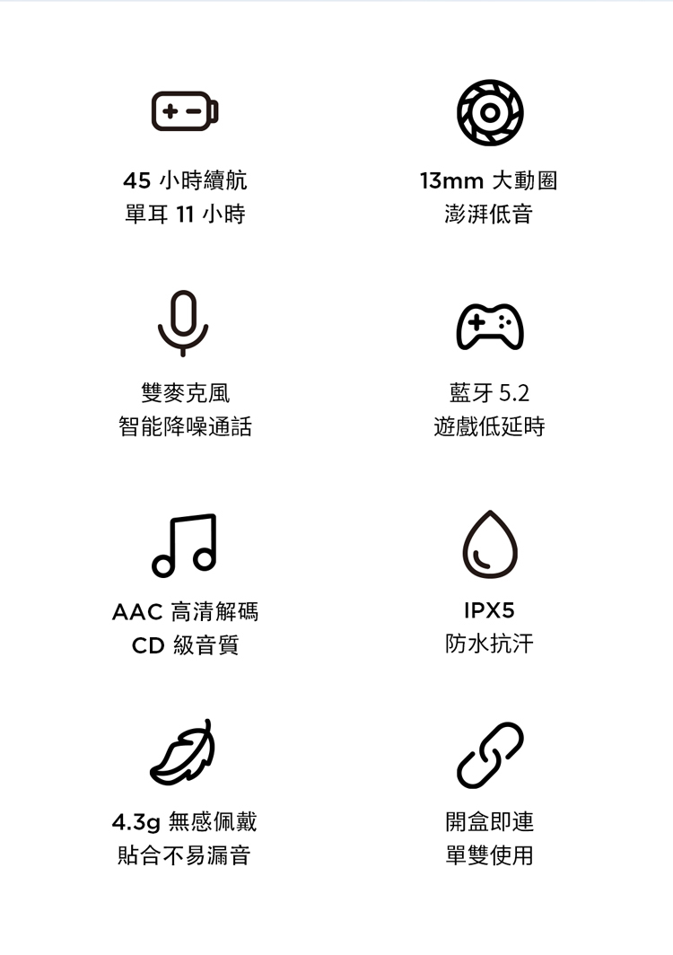 ★ 藍牙 5.2 技術 / 抗干擾,體驗更暢快