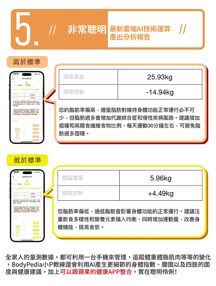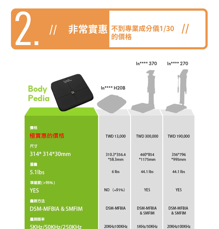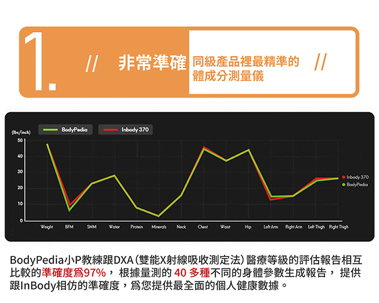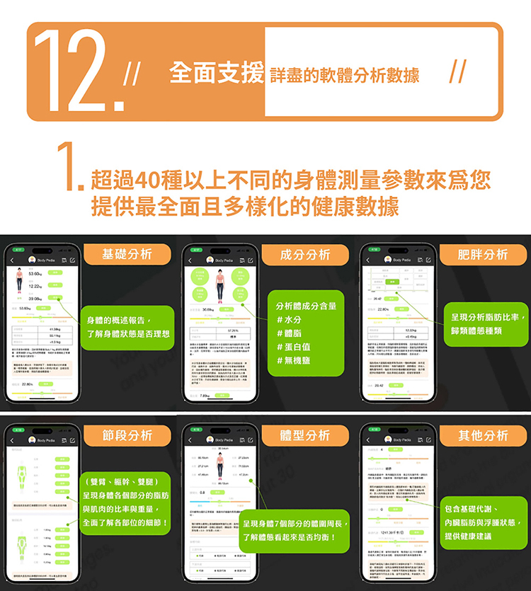 ●一機掌握身體各部位體肌肉、脂肪到水份