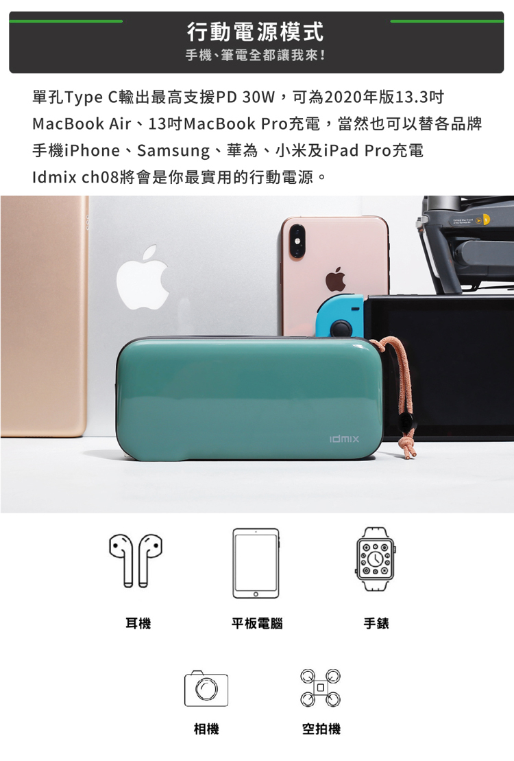 ●行動電源模式可達 30W 快充多款裝置