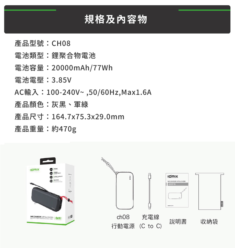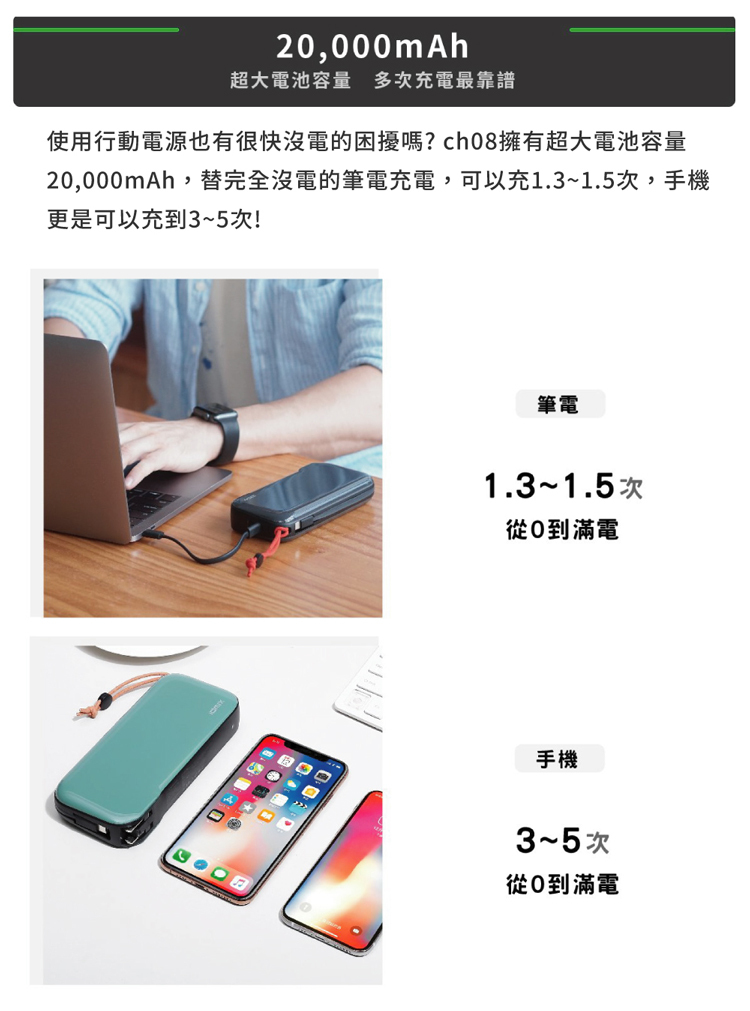 ●20000mAh | 可充MacBook Air 1.5次、iPhone 11 pro 5.5
