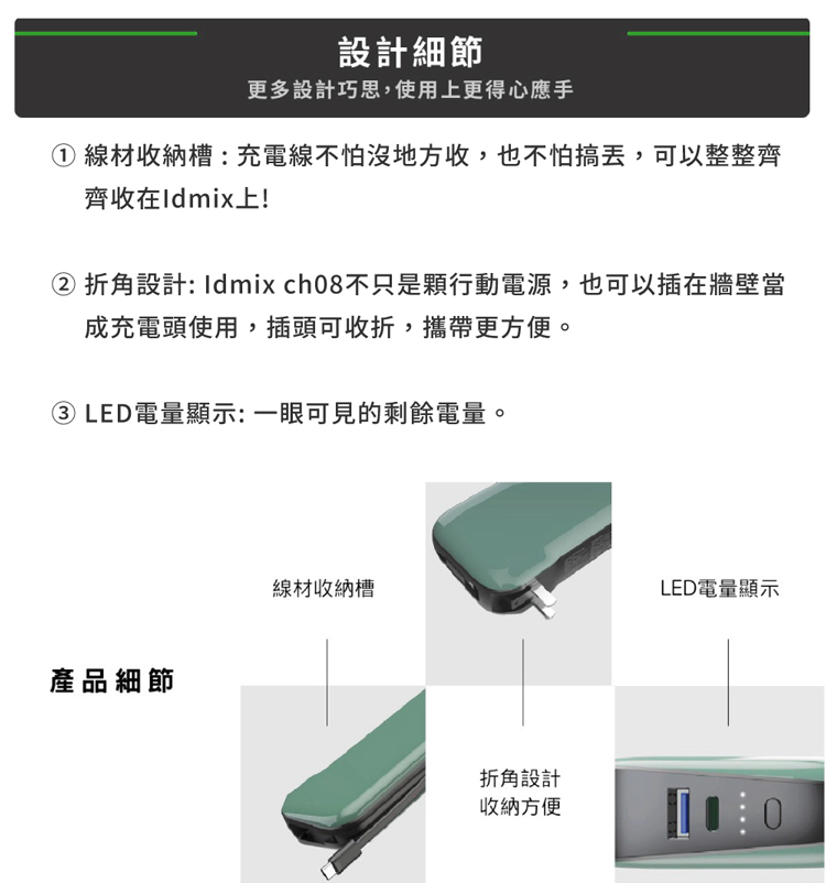 ●內藏充電線 | 充電線收納在機身
