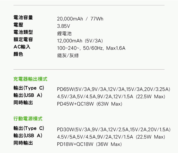 ●牆充模式可達65W大功率