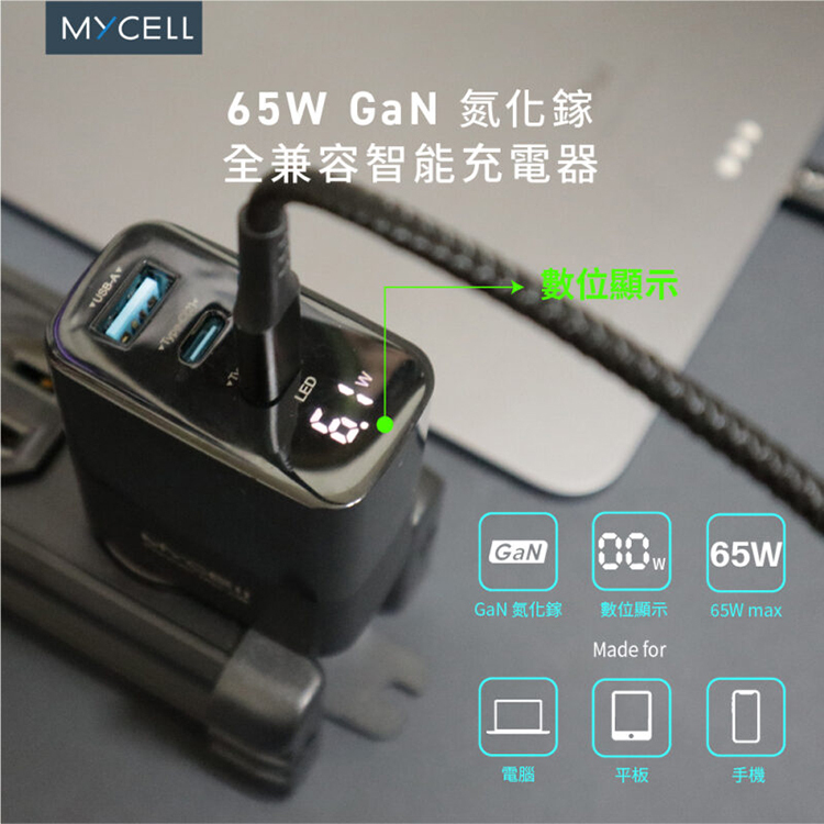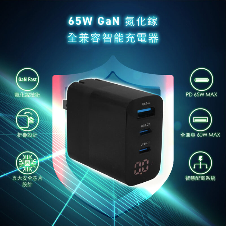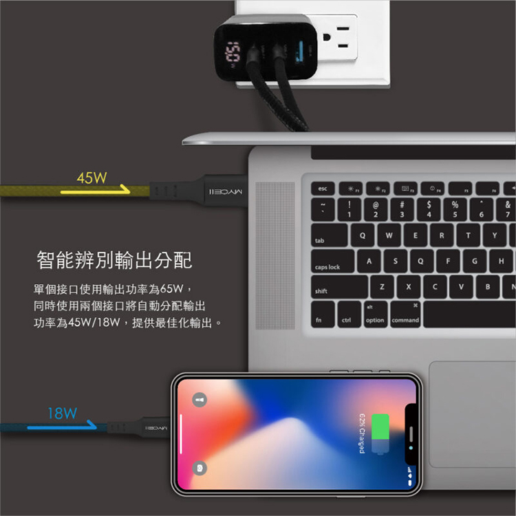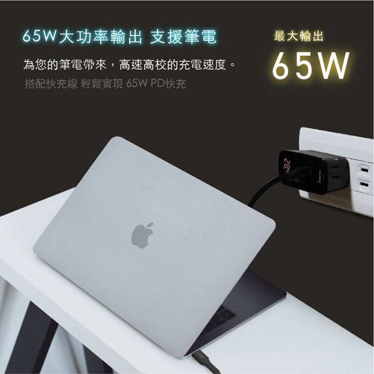 ★ 市面最快雙USB-C同時快充技術|電腦+手機同時充電,65W Max