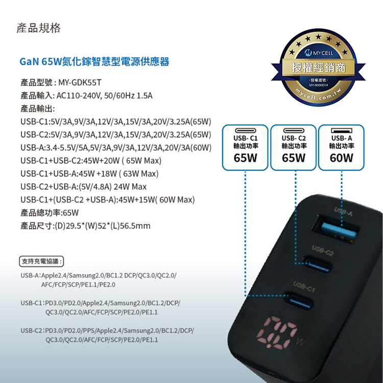 (支援QC2.0/QC3.0/PD3.0/三星PPS/APPLE 2.4A/AFC/FCP/MTK PE/SCP/兼容其他主流協議)