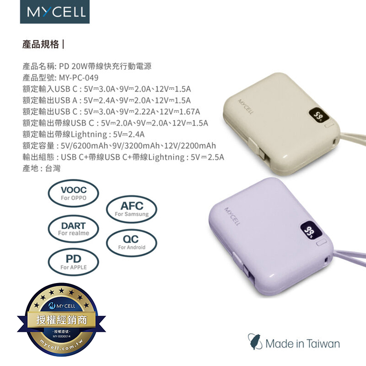【Mycell】Mini Air 20W PD 10000 全協議閃充行動電源 / 奶茶色-MY-PC-049_M