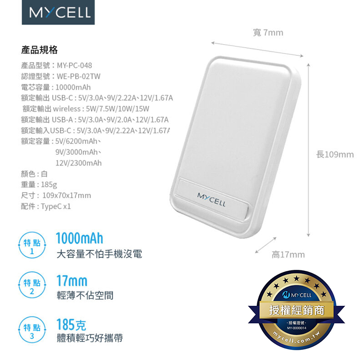 ★ 10000mAh 超強續電效能,滿足一天的用電需求